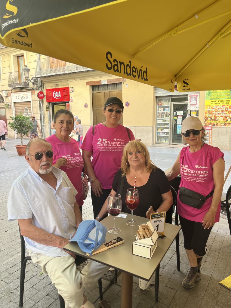 Proseguimos hacia la Plaza de la Virgen, y en las calles peatonales cercanas hablamos con varios grupos sobre la importancia de dejar de fumar. Algunas personas nos contaron que eran exfumadoras y lo felices que se sentían por haber tomado esa decisión.